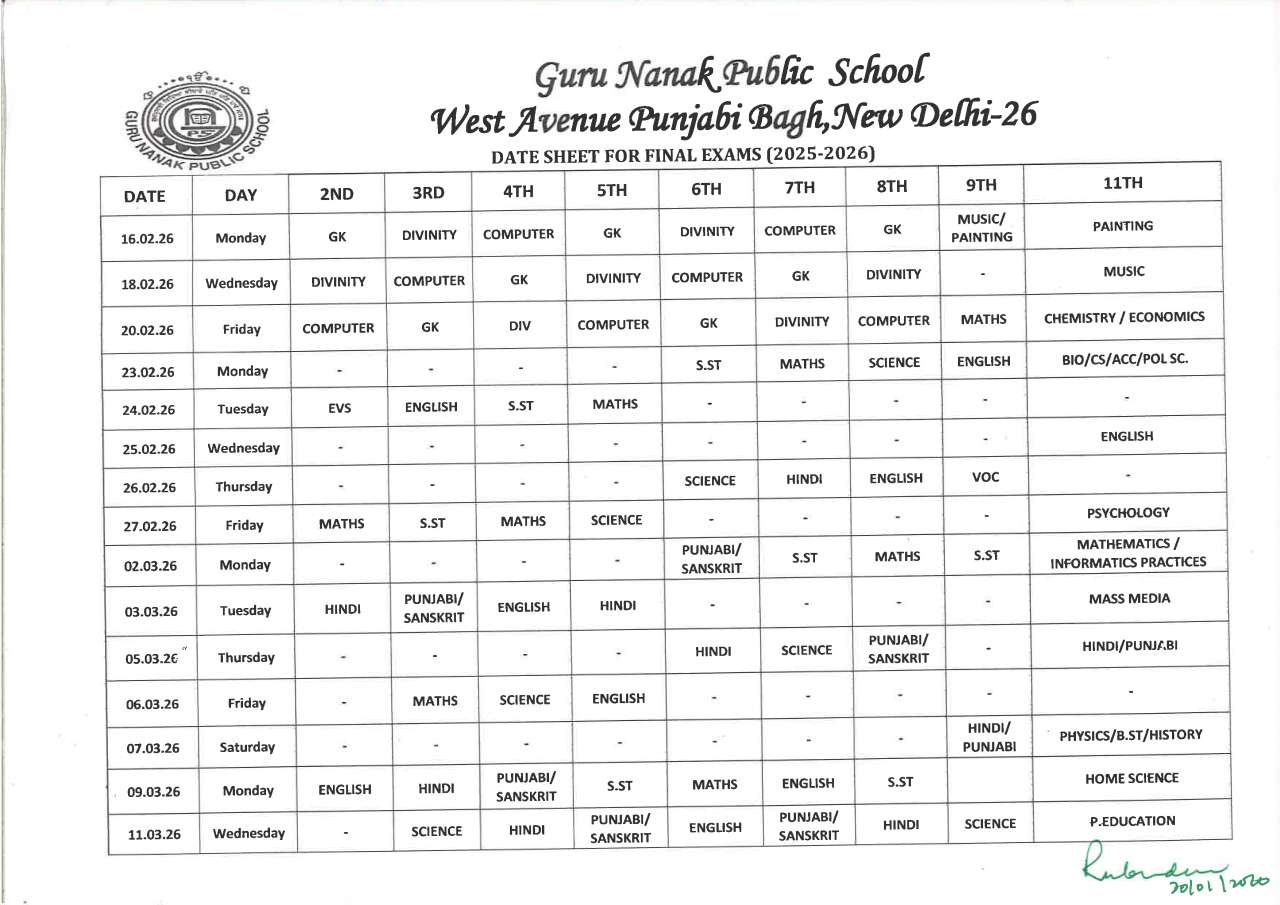 DATE SHEET FINAL EXAMS 2026 GNPS